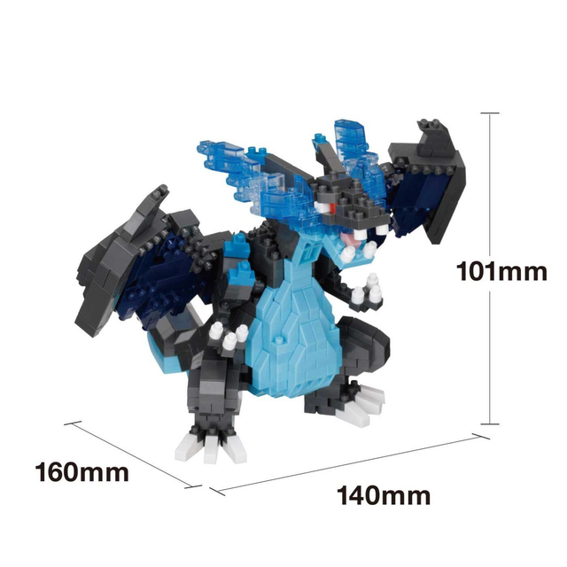 Assemblez votre propre Méga-Dracaufeu X, le Pokémon de type Dragon et Feu, avec ce kit Nanoblock de briques pixelisées ! Ce design met en valeur ses flammes bleues, son corps noir imposant, ses ailes stylisées et son regard féroce. Ce modèle est une véritable pièce maîtresse pour les fans de Pokémon et de construction.